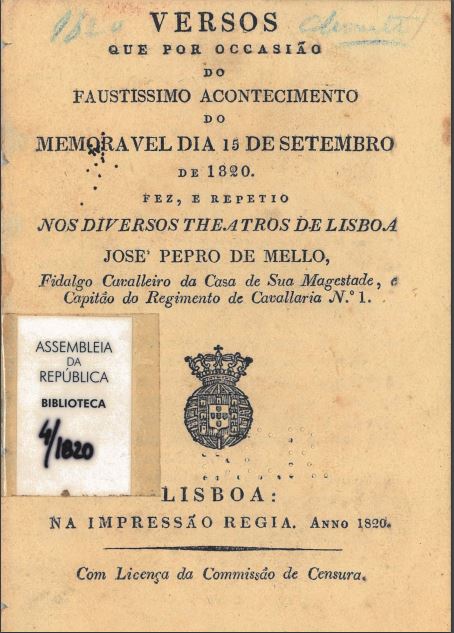1820 (24 de agosto) Revolução Liberal - pronunciamento militar no Porto. Nomeada Junta Provisional do Governo do reino. Publicação de manifesto defendendo a convocação de Cortes e a aprovação de uma Constituição